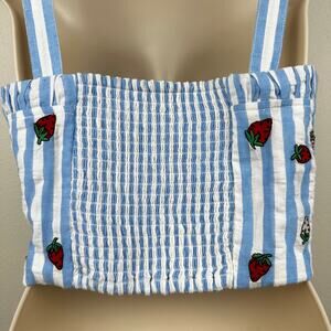 Maeve Anthropologie Striped Embroidered Strawberry Cami Top Blue White 4 Coquette Milkmaid Prairie