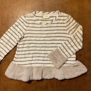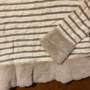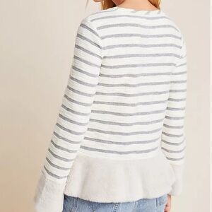Maeve Anthropologie Striped Knit Astor Fur-Trimmed Pullover A33