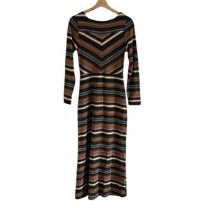 Maeve Anthropologie Striped Wrap Midi Dress Women’s Size Small Long Sleeve Brown