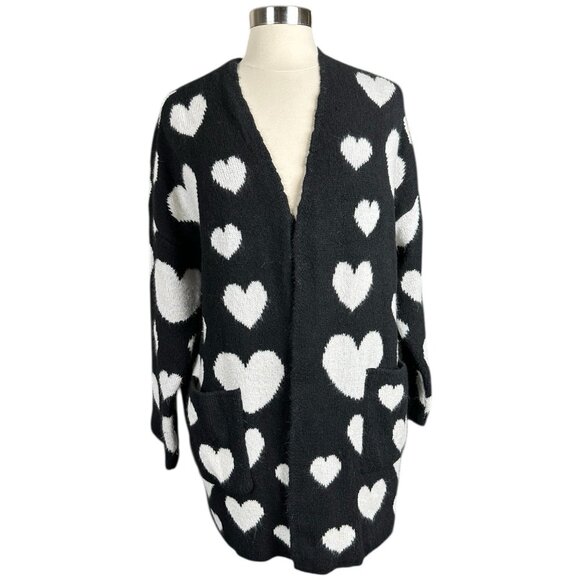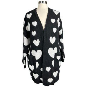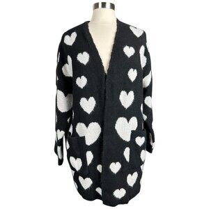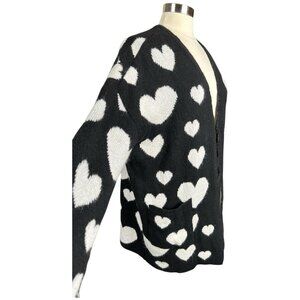 Maeve Anthropologie Sweater Womens XS Cardigan hearts black white open casual