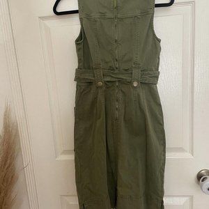Maeve Anthropologie Sz 0 Army Green Belted Utility Denim Shift Dress