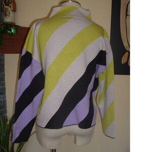 This MAEVE by Anthropologie The Cary’s Mock Neck Sweater is available in a women’s size Medium, it has a geometric pattern and the colors are mustard, black, lavender and beige. It has long sleeves, is oversized, boxy, well made, super soft and in great preowned condition, perfect for the season!