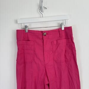 Maeve Anthropologie The Colette Crop Wide Leg Pants Pink Linen Blend Womens 30