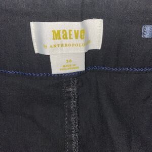 The Maeve Anthropologie Colette Wide Leg Black Pants in size 30 are a stylish and versatile wardrobe staple. Made from a blend of viscose, linen, cotton, and elastane, these pants feature a solid black color with contrast stitching and a high waist for a chic and flattering silhouette. The wide-leg design is perfect for both casual and business occasions, and the cropped length adds a modern touch while the pockets provide functionality. Made by the brand Maeve, these pants are sure to become a go-to piece for any woman's closet.