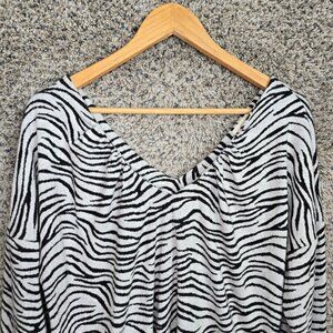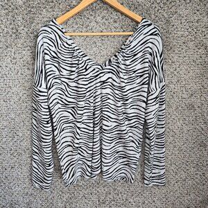 Maeve Anthropologie Top Womens Large Gray Animal Print Double V Neck Blouse