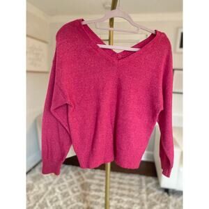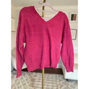 This cozy v-neck sweater by Maeve for Anthropologie features a rich pink hue with a soft, stretchy knit blend of polyester and elastane. Its relaxed fit and lightweight feel make it a perfect layering piece for any season.