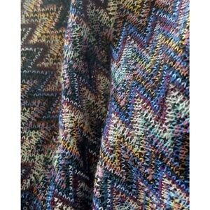 Maeve for Anthropologie knit dress is a colorful chevron style pattern that has a flowy high-low hem line, tank style top, and V-neck line, open-knit, fully lined with a drop waist, this dress would look great with a blazer, denim or khaki military style jacket, the color in this dress makes it extremely versatile