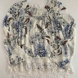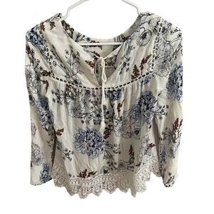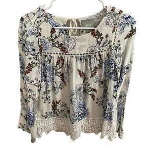 Maeve Anthropologie White Crochet Floral Blouse Top Size Extra Small 100% Rayon