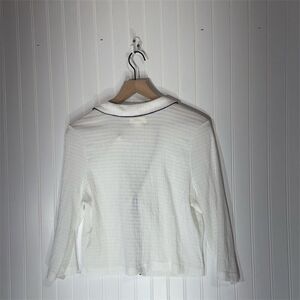Maeve Anthropologie White Textured Cardigan M NWT Black Trim Bow Front Top