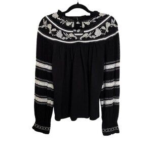 Maeve Anthropologie Winona Embroidered Lace Ruffle Neck Flowy Boho Top