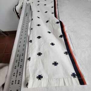 Maeve Anthropologie Women Bee Embroidered Cotton Pants XS White Side Stripes