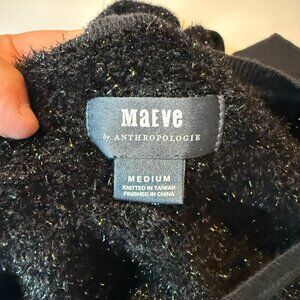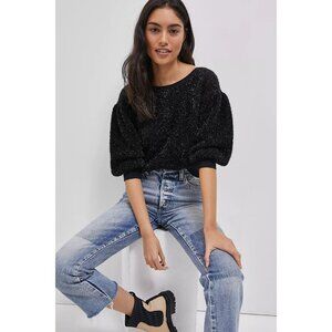 Maeve Anthropologie Women M Pamela Tinsel Sweater Black Shiny Holiday Festive
