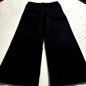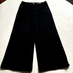 Maeve Anthropologie Women's Black Cotton Pants NWOT Sz 26 Wide Leg Cropped Jeans