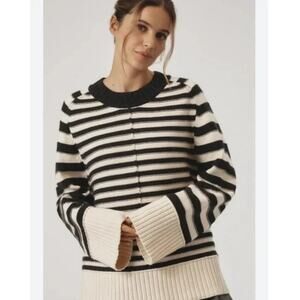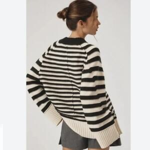 Featuring a relaxed, boxy fit with exposed seam details, the Chandler Crew-Neck Sweater is a forever go-to. Featuring a relaxed, boxy fit with exposed seam details, the Chandler Crew-Neck Sweater is a forever go-to. This only-at-Anthro collection is defined by crisp cuts, look-twice details, and playful polish. Here, there, and everywhere, Maeve makes your look. Colour: Black Combo Pullover Closure 60% cotton, 30% nylon, 10% wool Relaxed, boxy fit Vertical exposed seams Ribbed hem and cuffs Hand wash Imported New with tag. Never worn