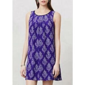 Maeve Anthropologie Womens Dress S Purple Petal Stamp Silk Flowy A Line Swing