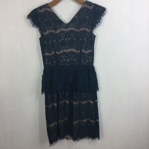 Maeve Anthropologie Womens Elsa Lace Peplum Cap Sleeve Dress Teal Blue Size XS
