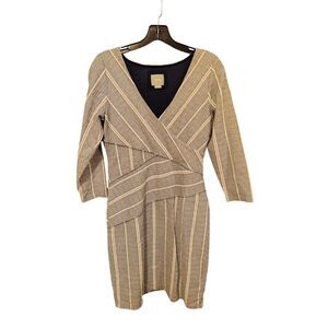 Maeve Anthropologie Women's Gray Striped Wrapped Column Dress Size Medium