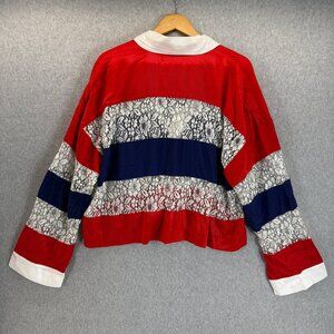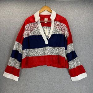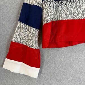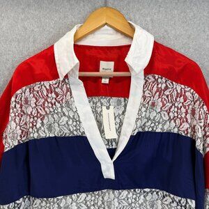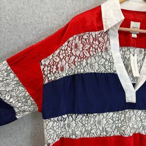 Maeve Anthropologie Womens Lace Striped Patriotic Blouse Top V-Neck Size XL NWT