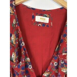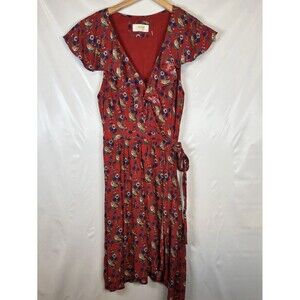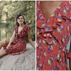 Maeve Anthropologie Womens Size 0 Red Rosalia Floral Faux Wrap Ruffle Dress