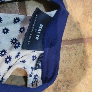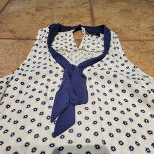 Maeve Anthropologie Women’s White Tank Top With Navy Blue Tie Collar US 2, EU 34.