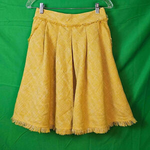 Maeve Anthropologie Womens Yellow Tweed Fringe Skirt 2