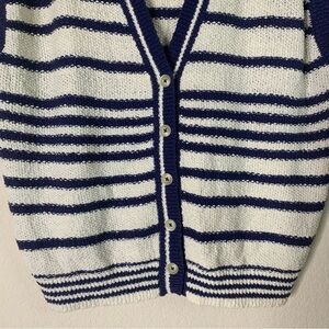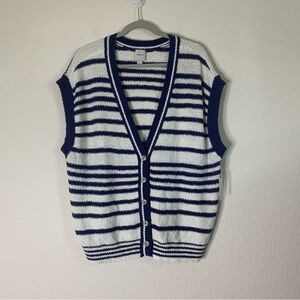 Maeve by Anthropologie Womens white blue knit slouchy button down cardigan sleeveless vest