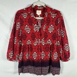 Maeve Anthropologie Woodland Walk Red Aztec Button Front Blouse – Size 4