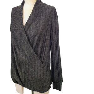 Maeve Anthropologie Wrap Sweater XS Charcoal Gray Ribbed Knit V-Neck Long Sleeve