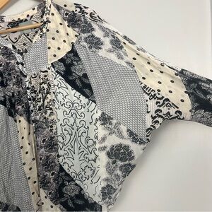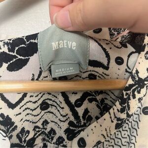 Maeve Anthropologie black white cream mixed print popover blouse size medium