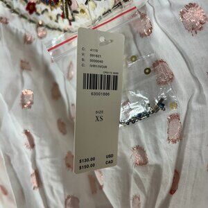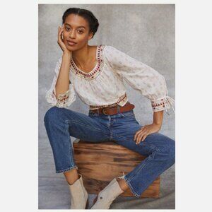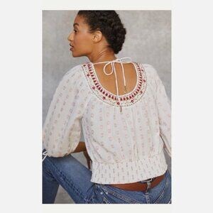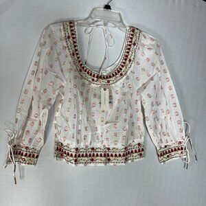 Maeve Anthropologie ladies blouse white red beaded embroidered boho peasant New