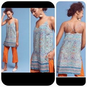 Maeve Anthropologie size 0 /XS Meret Tunic Silk Green Floral Paisley Tank Top