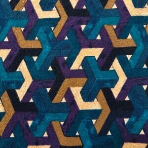 - blue teal, black, cream, purple and tan pattern