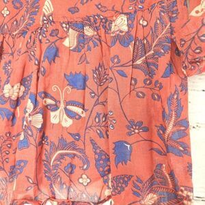 Maeve Anthropologie Floral Butterfly Crochet Trim Blouse Top Shirt Size 8 Length: 26" Armpit to Armpit: 18" Bust: 36"