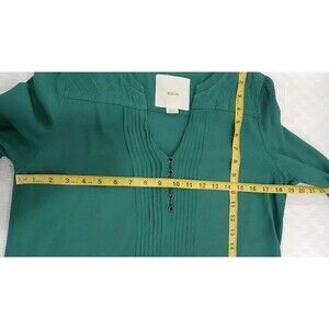 Maeve Anthropology Green Drop Waist Dress Ruffles Quilted Pleated Buttons Size S