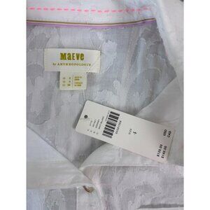 Maeve by Anthropologie brand women's size 4 white button shirt. Brand new with tags, retails for $120. Lightweight 100% cotton blouse has a burnout style texture for an airy flowy feel. Collared top with roll tab sleeves. Has a front chest pocket.