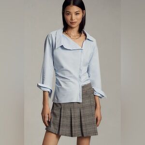 Maeve Asymmetrical Buttondown Shirt, Women’s Sky Blue Blouse, Size XXS