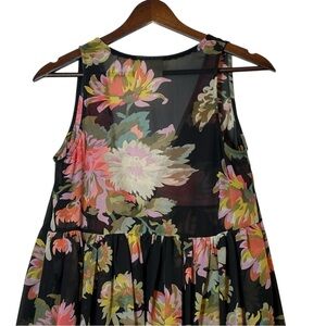 Maeve Asymmetrical Floral Tunic Black and Pink