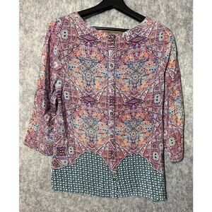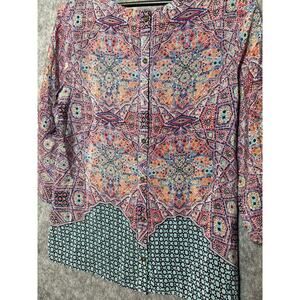 Maeve Athropologie Sydney Silk Top Womens 6 Multicolor Mosaic Print Button Back