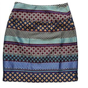 Maeve Audra Mini Skirt Mixed Media Metallic Jacquard pattern side zipper size 0