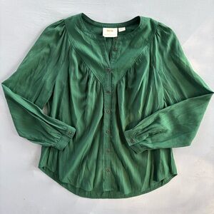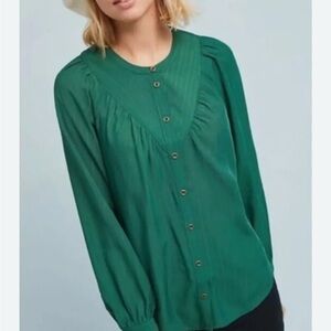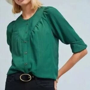 Maeve Avignon Buttondown Blouse Size Small Emerald Green Anthropologie