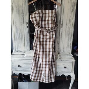 Maeve Belted Square-Neck Plaid Dress - New XL
