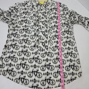 Maeve Bicycle Print Blouse Long Sleeve Black/White Size 8 Lightweight Artistic