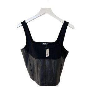 Elevate your wardrobe with this Maeve Faux Leather Corset Tank. Its sleek, modern silhouette seamlessly combines a chic corset style with comfortable stretch fabric. Ideal for a night out or a stylish daytime look, this tank offers versatility and flair. Pair it with skirts or pants for an effortlessly elegant statement.