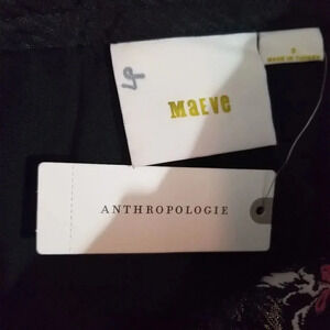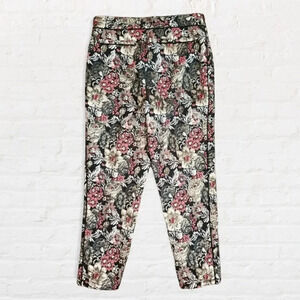 Maeve | Black & Metallic Floral Motif Ankle Pants Sz 0