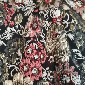 Floral black and metallic threading pants with Black piping. There are front side pockets and faux back.