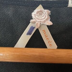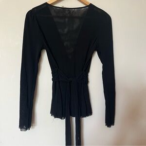 Maeve Black Nylon Front Tie Low Cut Long Sleeve Top PP