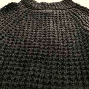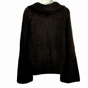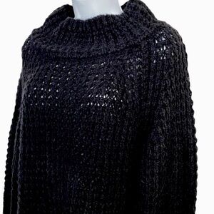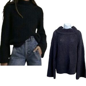 Maeve Black Sweater Chunky Waffle Wool-blend Oversized Relaxed Mock Neck XSP