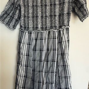 Maeve Black & White plaid smocked & collared dress - petite large