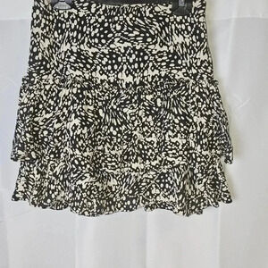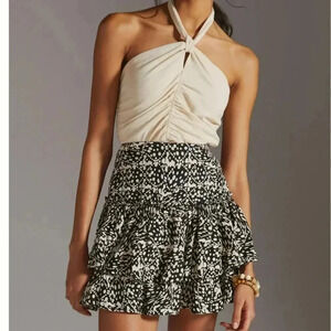 This Maeve mini skirt features a striking black and white pattern, perfect for adding a touch of elegance to any outfit. Its mini length offers a modern and chic silhouette, making it a versatile piece for various occasions. Crafted with attention to detail, this skirt is both stylish and comfortable.