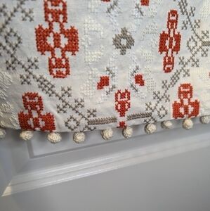 Maeve by Anthropologie cream / off white & red geometric print embroidered or cross stitched Mini Skirt with Pompoms size 2. has pockets